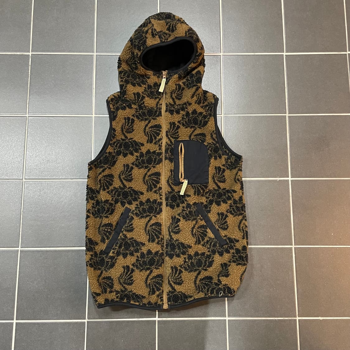 Amina 실측 사이즈:어깨36 가슴48 총기장66 단위cm Amina 플리스 베스트입니다 브라운색 톤의 바디와 플라워 톤 디테일이 매력적인 실루엣 국내 95 추천 우먼 프리 추천 드려요