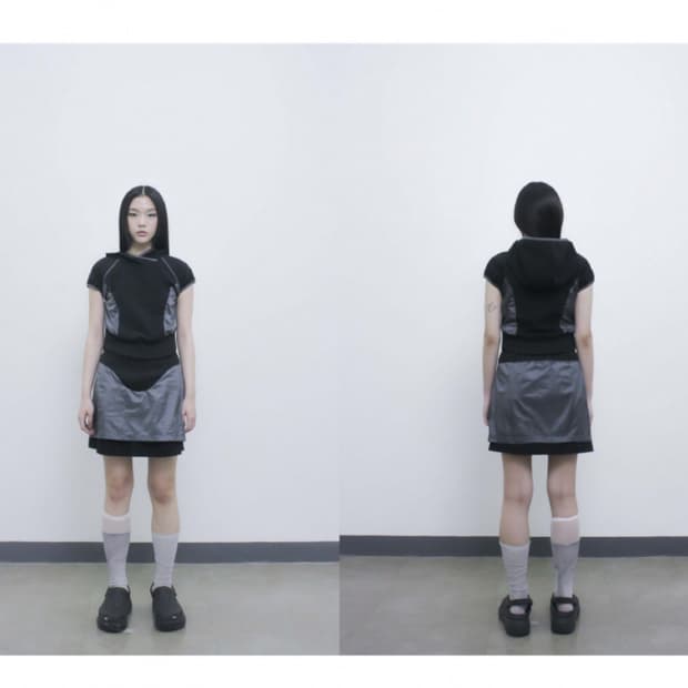 Curved Cut Layered Tee / Charcoal / 3사이즈