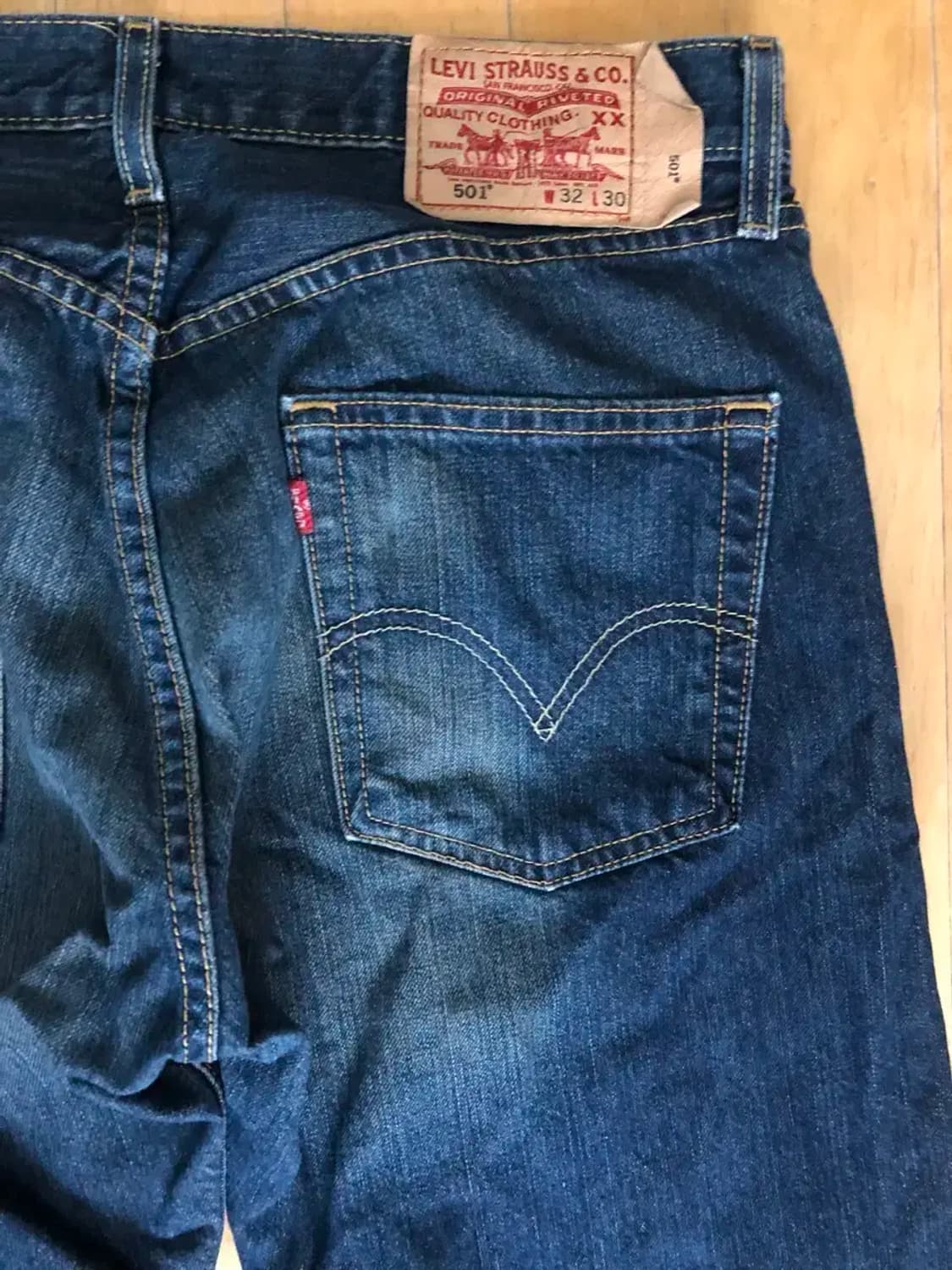 리바이스 시그니처 라인인 501의 데님팬츠 브라운 빛이 도는 워싱으로 빈티지한 색감이 멋집니다 이상있는 곳 없이 컨디션 양호합니다 허리 40 밑위 28 허벅지 30 밑단 22 기장 101