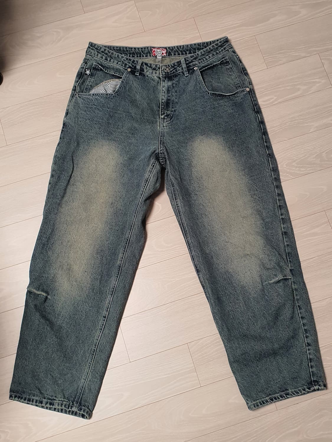 스타팀 데님 34 사이즈입니다. 사이즈표보다 실제 사이즈 작습니다. 총장이 108cm정도 될 거 같아요. 사용감, 사타구니쪽 오염 있습니다. 사진 확인해주세요. 배송비 포함입니다