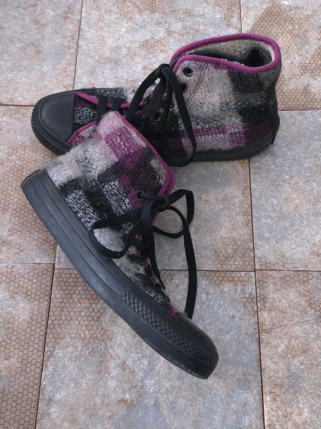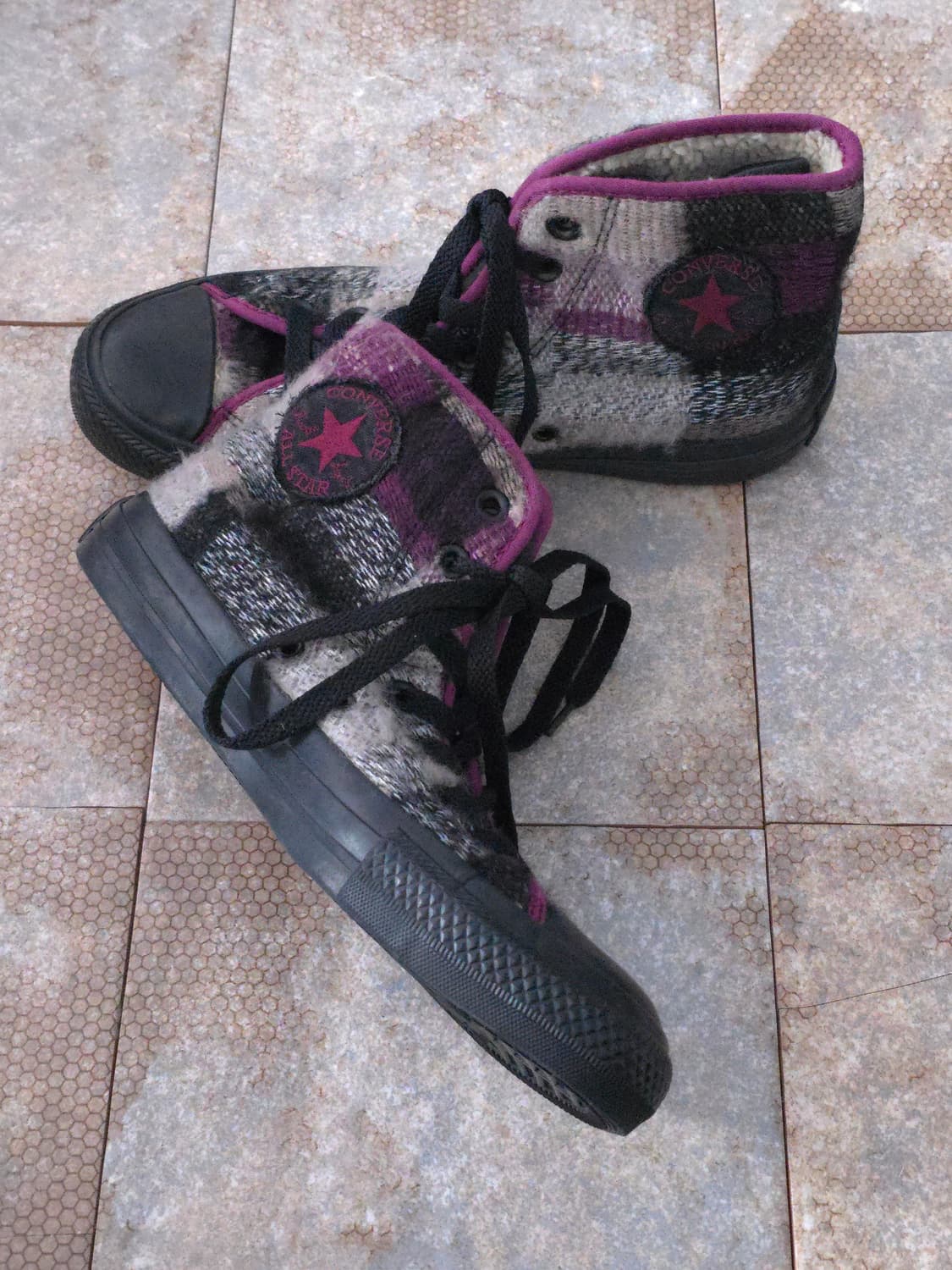 Size - 240(표기사이즈) - Comment 데일리용으로 신기좋은 컨버스 척테일러 올스타 플래드 체크 하이 모델입니다. 내피가 양털로 되어 있어 따뜻하게 신기 좋습니다! -세탁 완료한 제품입니다. -상태:7.8/10(새상품 기준) 사용감(사진참고)