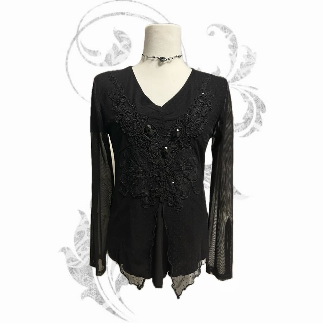 가단 42 총장 52 - • 신축성 있음 • 시스루 레이어드된 디자인 • 소매 전체 매쉬 소재 • 앞면 큐빅 + 자수 포인트 • 밑단 사선 컷팅 - 🖇️계좌 거래만 가능한 상품입니다 🖇️문의 전 공지 게시글 필독 / 최소한 상점 소개만이라도 확인 부탁드립니다