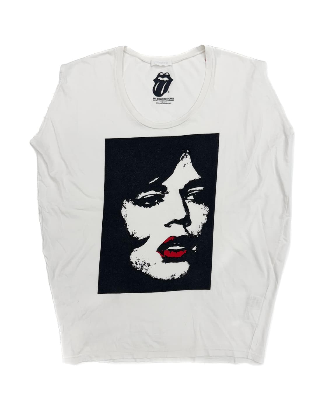 DESCRIPTION -롤링 스톤즈 빈티지 스타일 티셔츠 -프론트에는 앤디 워홀의 작품을 연상케 하는 팝 아트풍 프린트가 강렬하게 배치됨 -백넥에는 상징적인 혀 로고 자수가 작게 들어가 디테일을 더함 -슬리브리스와 박시한 실루엣으로 여름철 단독 착용이나 가디건 레더 자켓 이너 스타일링으로 적합함 -마른 남성도 추천 MATERIALS -COTTON 100% SIZE(cm) 가슴52 총장 61