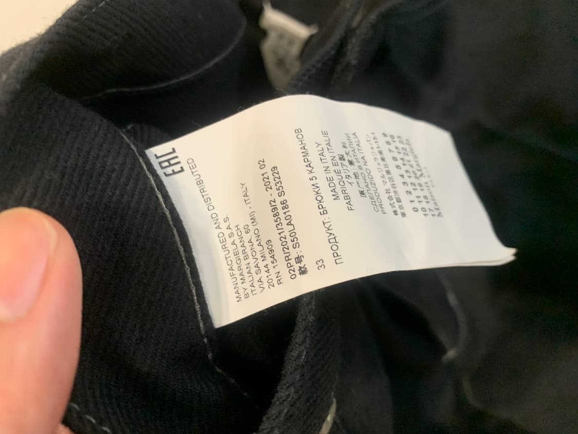 1. 판매물품: 메종 마르지엘라 팬츠 2. 사이즈: 33 (허리81 기장117 밑단27) 3. 구성품: 택 4. 가격: 28 5. 거래방법: 부산 직거래/우편거래 6. 구매처: 구매대행 7. 제품상태: 9/10 새제품에서 3회 정도 착용 했습니다. 데미지나 오염 없습니다. (스트레이트 핏으로 오버사이즈와 매치하면 이쁜 제품 입니다, 해외 샵에서 베트멍 후드에 매치한게 이뻐서 찾아보고 산 제품 입니다.)