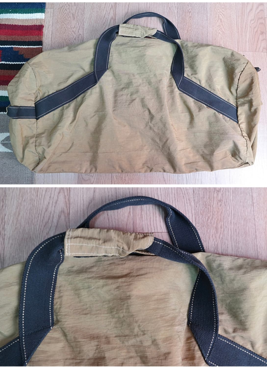 일본판 EDDIE BAUE 에디바우어 대형 빈티지 백 에디바우어의 대형 빈티지 가방입니다. 나일론 소재로 보이며 워싱과 색바램 오염 등등 있는 매우 빈티지한 느낌의 가방입니다. 크로스 끈은 없습니다.가방이 크고 정말 이쁘네요. 수량은 하나이며 사이즈는 아래 실측 참고하세요. 가로:74 세로:45cm -오염이나 하자가 있는 상품은 반드시 알려드립니다-