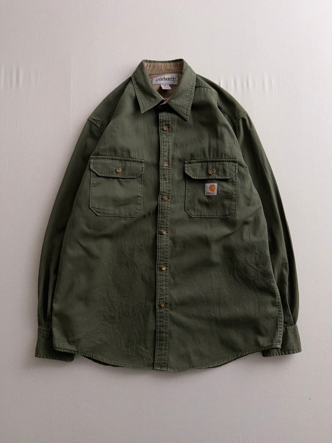 - 제품. 칼하트 리메이크 올리브 투포켓 필드셔츠 - 추천사이즈. L - 실측 * 어깨 50 * 가슴단면 56 * 총장 76 * 팔길이 62 - 가격 : ₩ 40,000 - 배송료 3000원 별도 ( 2장이상 구매 시 무료배송 ) - 필독사항 택 사이즈는 국가별로 상이하여 따로 표기하지 않으니 꼭! 실측사이즈로 판단해주시길 바랍니다 이로인한 교환 및 환불은 불가합니다. 모니터 환경 혹은 모바일 기기에 따라 실제 색상과 차이가 있을 수 있습니다. 측정 방법에 따라 실측치수는 ± 3cm 정도 차이가 있습니다. 충분한 케어 후 발송되지만 세탁 후 착용하시는 걸 권장드립니다. 오염부분이나 데미지가 있는 경우는 최대한 자세히 촬영하려 노력하고 있습니다만 빈티지 특성상 발견하지못한 미세한 오염이나 데미지가 있을 수 있습니다. 이로 인한 교환 및 환불은 불가합니다. 빈티지 특성상 단순 변심 혹은 사이즈 미스 등으로 인한 교환 및 환불은 불가합니다. CNC68
