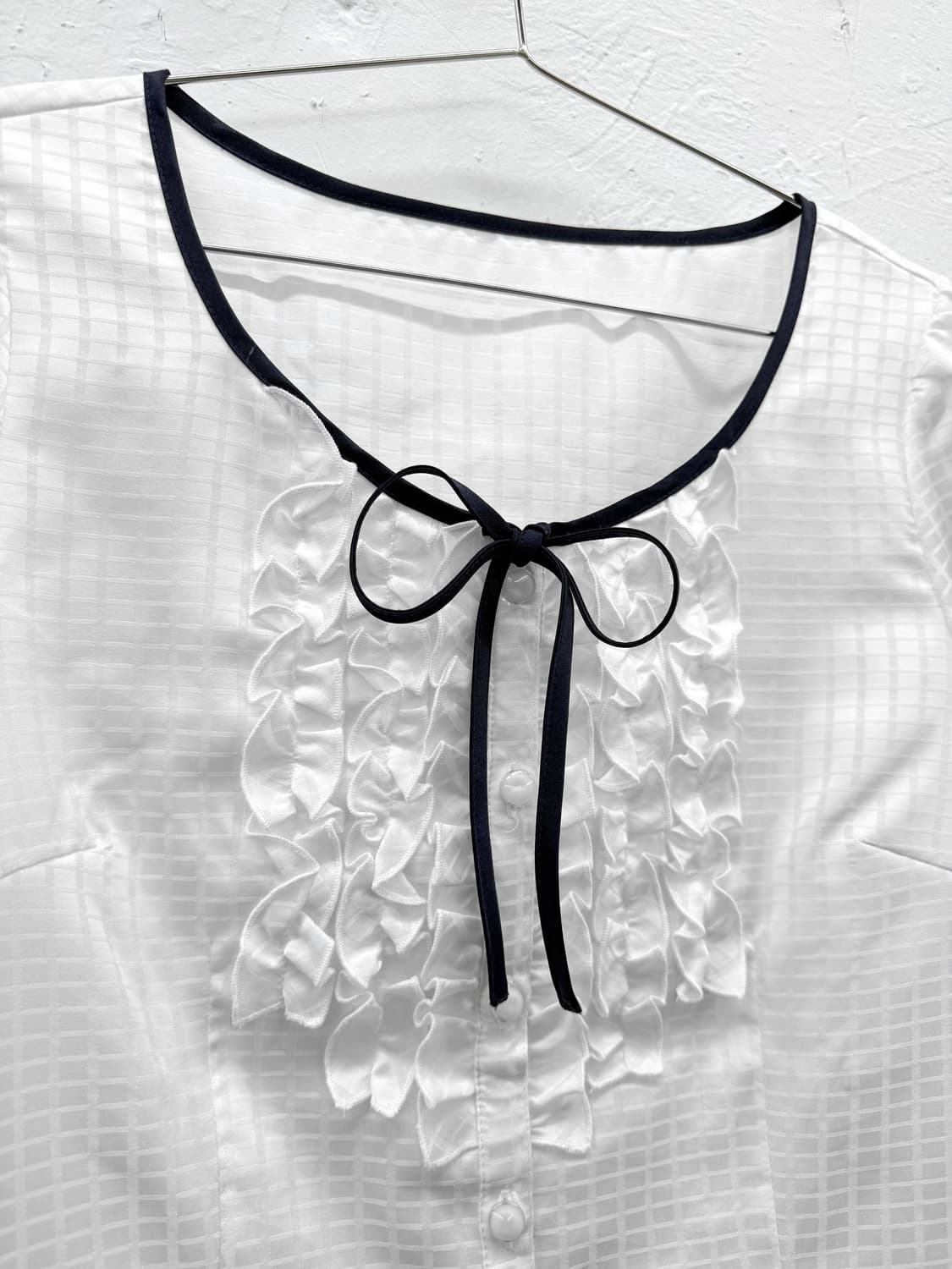 JPN 스트랩 프릴 블라우스 - SiZE : OS - Length-56 Chest-45 Shoulder-35 (CM) - Condition : 9/10 - DM for product inquiry and purchase