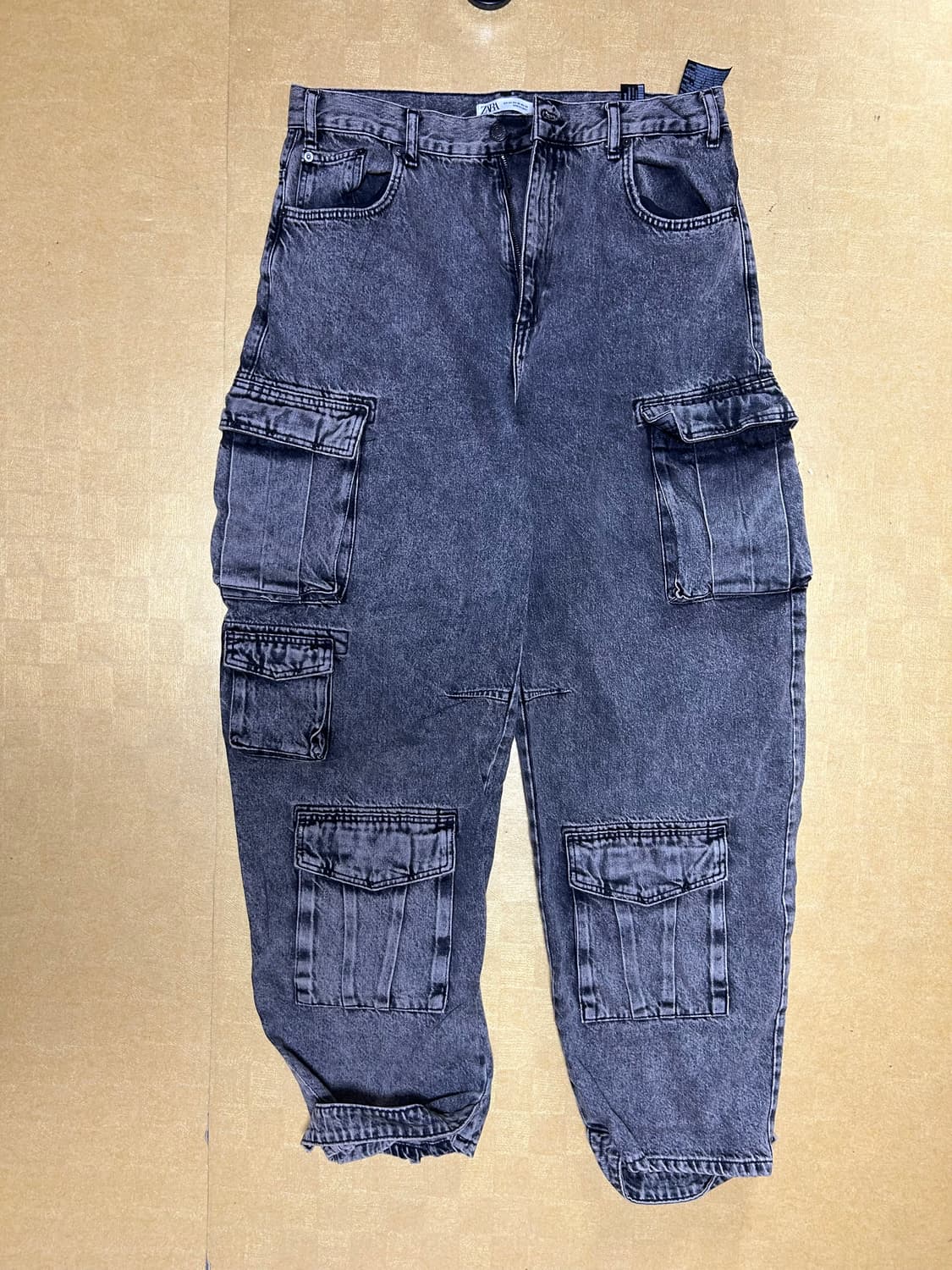 38사이즈 자라 zw 하이웨스트 카고 팬츠 데님 9632/072