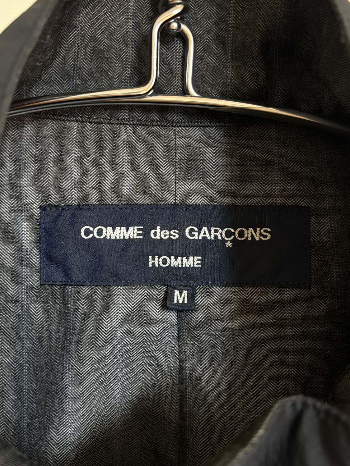 꼼데가르송 옴므 2022 네이비/그레이 집업 M 입니다. 네이비원단은 나일론이고 그레이 스트라이프 부분은 리넨이랑 면 혼방입니다. 바람막이로 제작되서 봄여름에 입기 좋은 두께감이고, 오버핏으로 나와 100-105사이즈 입으시는 분이 오버하게 입으시는걸 추천드립니다. 발매 당시 110만원에 구매했고, 빠른 품절로 매물도 현재 없습니다. *할인 예정 없습니다. 어깨 54 가슴 63 팔 57 총장 70