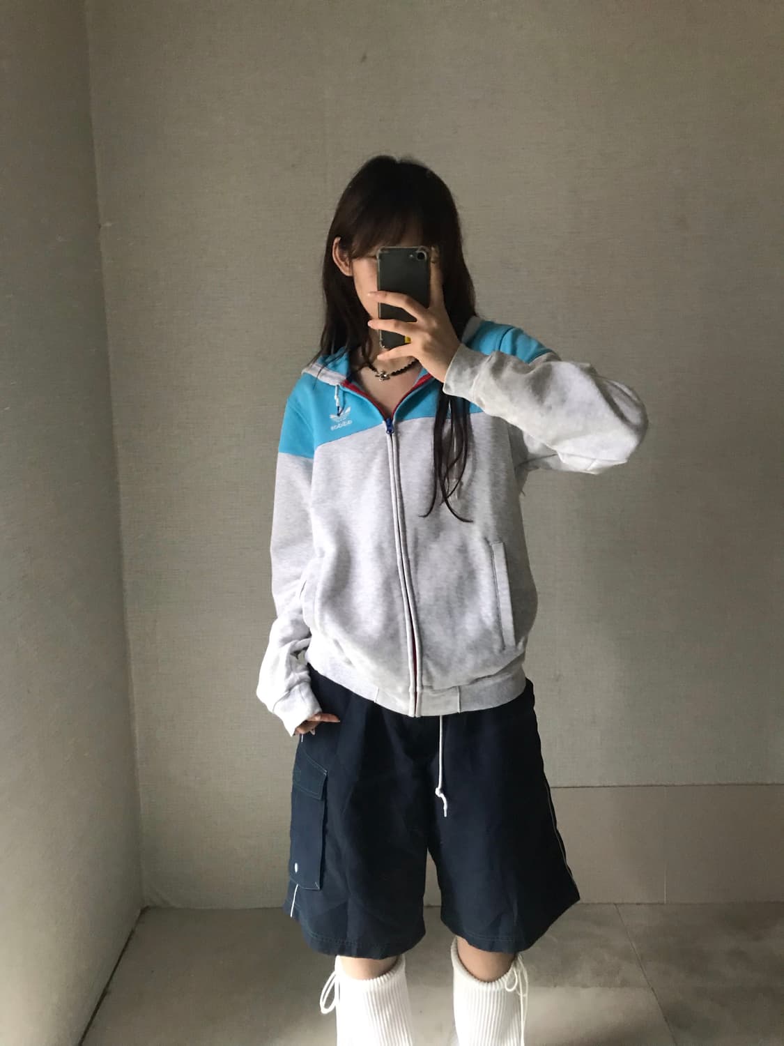 ¥ Adidas gray sky blue hood zip-up Size: 총장62 가슴56