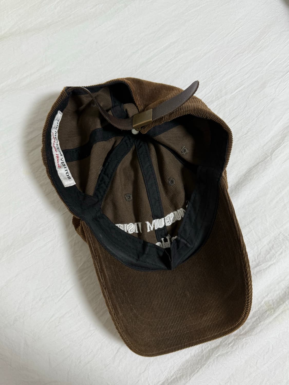 더 뮤지엄 비지터의 브라운 쿄듀로이 볼캡입니다. 2021이 적혀져 있어 지금은 구할 수 없는 상품입니다. 사용감은 있습니다. 중고거래 특성상 교환 및 환불은 불가합니다. 원하는 부분 있으시면 사진 찍어 보내드릴게요