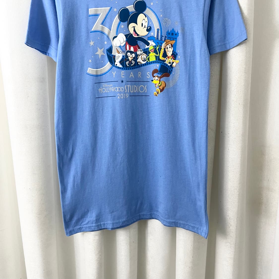디즈니 블루 30주년 프린팅 하프 티셔츠 사이즈S 어깨46 소매21 가슴45 기장78