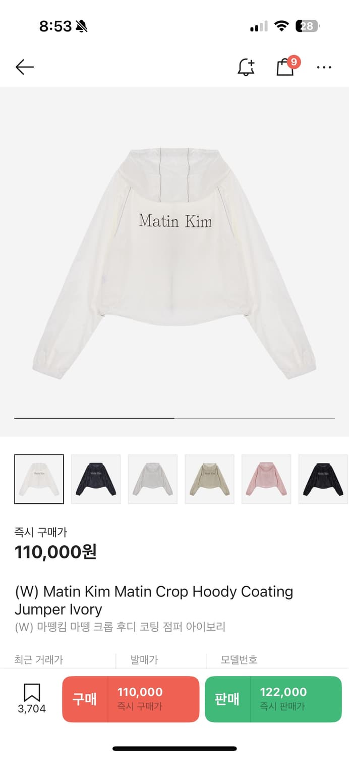 마뗑킴 크롭후디 코팅점퍼(아이보리)급처