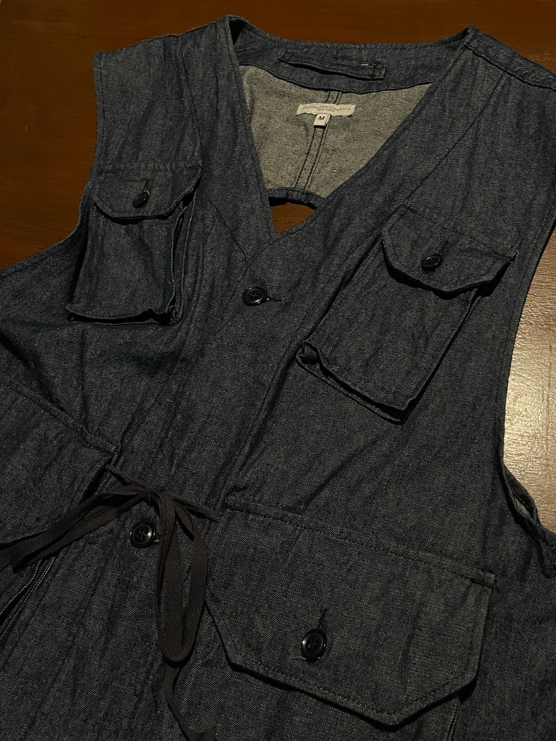 엔가 23ss 인디고 c-1 vest 제품입니다 정상가 37만원 가까이 구매하였으며 표기 사이즈는 m사이즈이나 착샷 보시듯 앞 뒷면 전부 끈으로 조절 가능하기에 사이즈는 큰 의미가 없다고 생각합니다 되려 반팔 셔츠 코트 어떤 옷이든 레이어드가 용이한 사이즈이기에 원하는 실루엣으로 착용가능하며 실착용 3회정도로 새상품과 같습니다 제품의 가치를 아시는 분이 구매하셨으면 좋겠습니다