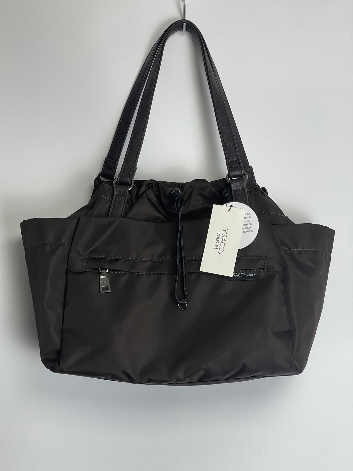 요지야마모토 Y'SACCS 여성 토트백 새상품 입니다. 별도의 파우치와 스트랩을 활용해서 3way로 사용 가능하구요. 나일론 소재라서 생활방수도 가능하고 데일리로 편하게 활용하기 좋은 상품 입니다. 출근, 통학 뿐만 아니라 간편한 여행 스타일링에도 추천 드립니다. *포토샵 없이 순수하게 카메라와 조명만으로 촬영해서 업로드 하고 있습니다. *죄송하지만 에눌은 어렵습니다. 상점에 다른 상품도 많은 관심 부탁 드려요! **표기 사이즈 Free 본상품 : 가로 위40cm 아래 30cm /세로 28.5cm / 끈길이 21cm 파우치 : 가로 29cm / 세로 23cm **컬러 : Dark Brown