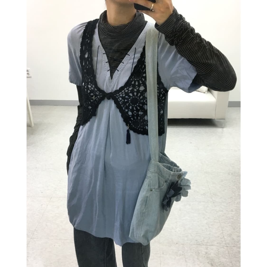 brand BEAUTY&YOUTH fabric(%) 큐프라64 폴리36 size(cm) 어깨 나그랑 가슴44 총장88 - 가볍고 시원한 소재감 - 길게 늘어지는 아일렛 수술 - 레이어드로 사계절 내내 착용할 수 있는 시즌리스 아이템 model 170cm 55size / 5만 원 이상 구매 시 무료배송
