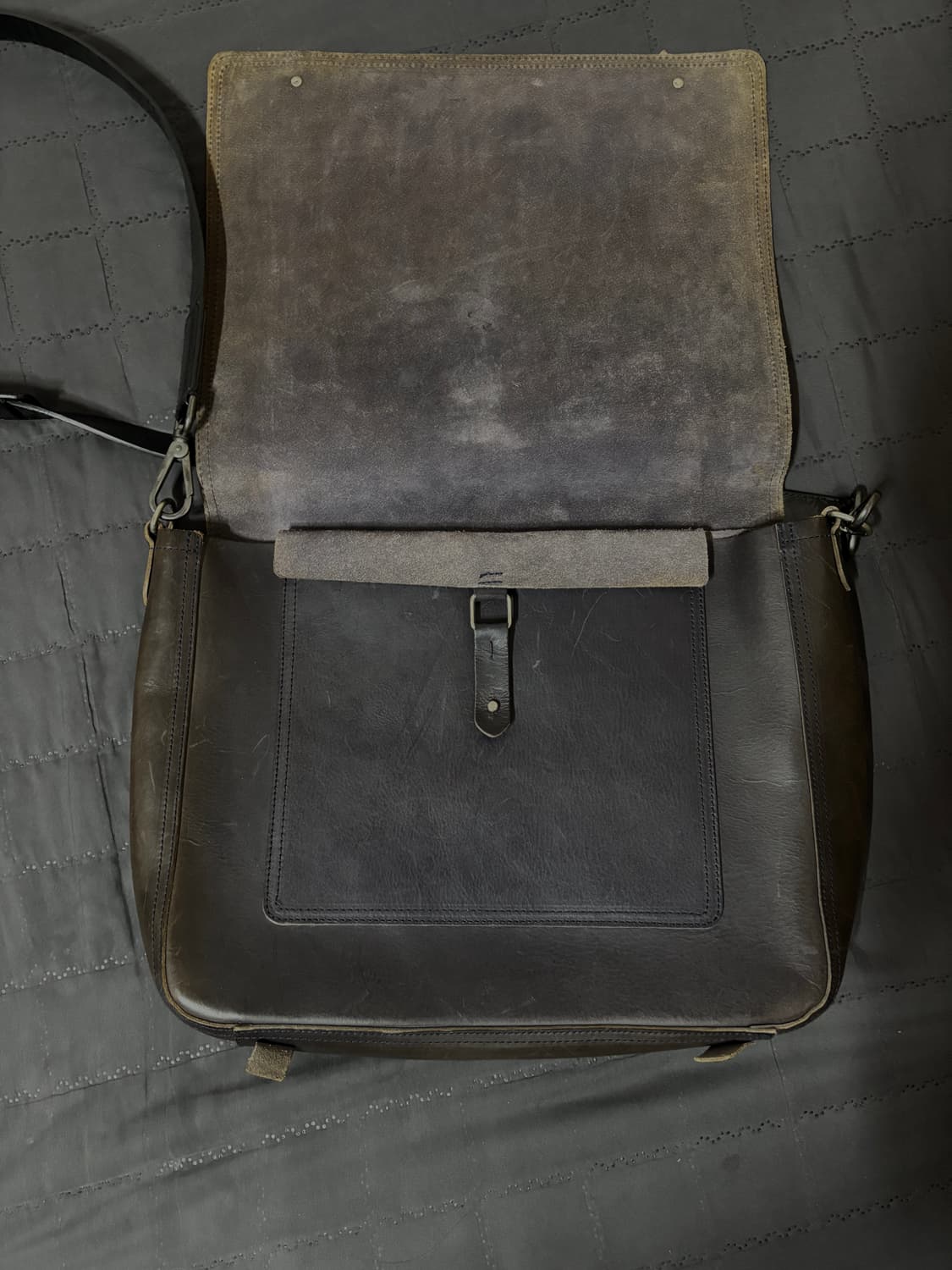 1967년의 스쿨백을 모티브로 만든 마르지엘라 가방입니다 그레일드에서 같은 제품을 판매중이니 사이즈 참고해주세요. 실제로는 사진보다 조금 더 어둡습니다. 가로 36 세로 28 너비 8.5