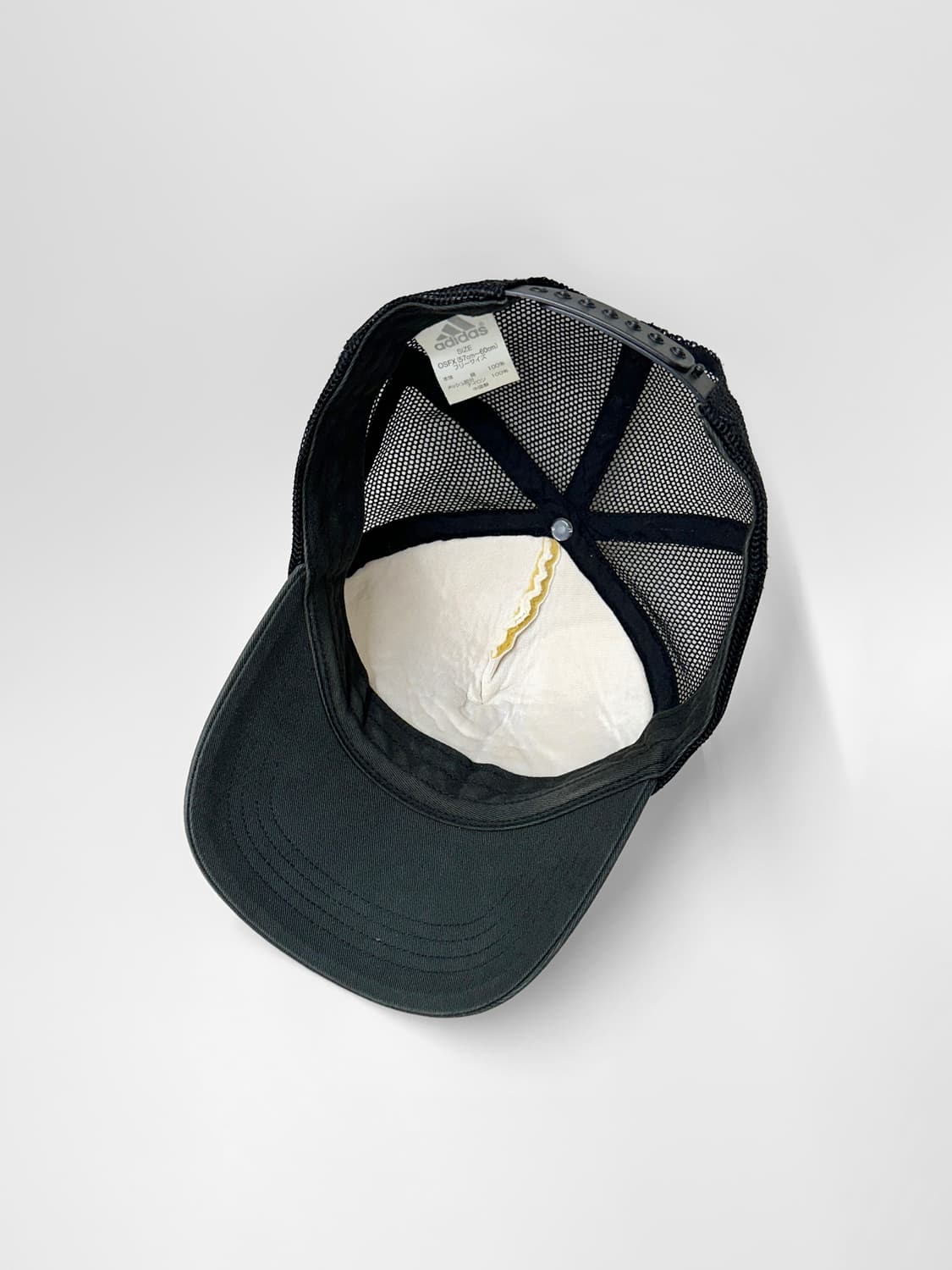 Vintage Adidas Triple Logo Mesh Cap🏴 자연스러운 블랙 컬러와 크리미한 화이트 컬러 베이스에 아이코닉한 아디다스 트리플 로고가 돋보이는 빈티지 아디다스 메쉬캡 입니다🖤 빈티지한 워싱과 무드가 매력적인 제품으로 다양한 룩에 포인트로 연출하기 좋은 제품 입니다🛹 전체적으로 소소한 사용감외에는 우수한 컨디션 입니다✨ 전문 클리닝 완료한 제품 입니다🫧 size - Free (스냅버튼 조절 가능)