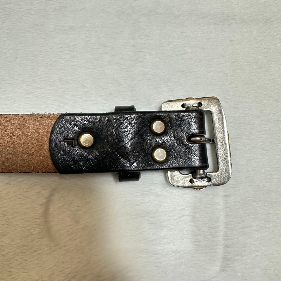 캐피탈 오일드 레더 스터드 디스코 버클 벨트 블랙 실측 단면 (cm) 버클 포함 105 프로실측이 아니기에 1~2cm 오차가 있을수도 있습니다.