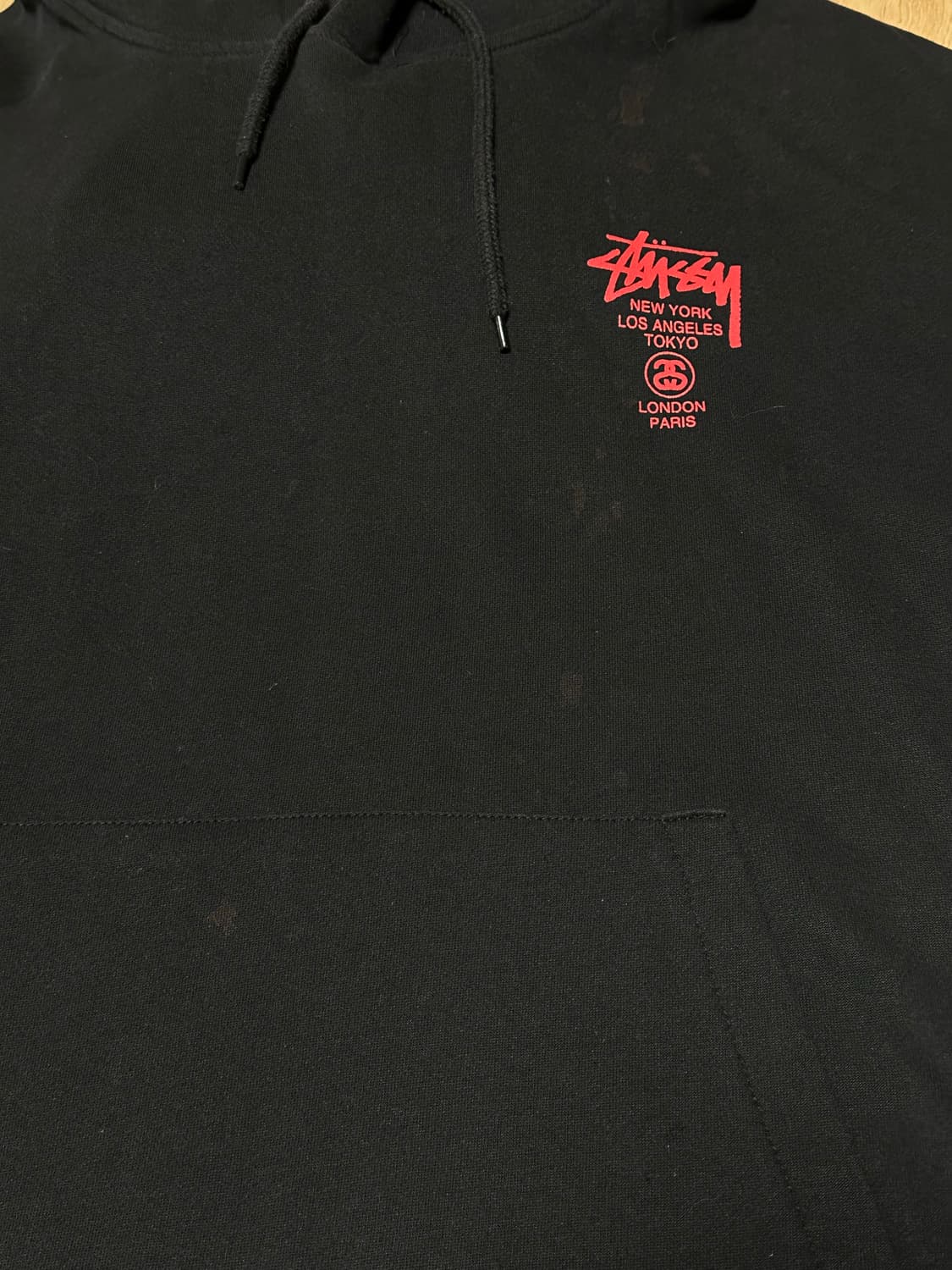 상품명 : 스투시 STUSSY 월드투어 후드티 블랙 여성 M 상태 : 8/10 실측 : 어깨 + 팔길이 69 가슴 56 총 길이 61 (cm) - 재는 길이에 따라 실측 사이즈에 차이가 있을 수 있습니다. 사진 속 전면부 붉은 자국들 존재 이외에 전반적으로 좋은 컨디션 유지중입니다. ------------------------------------------------------------------------------------------------------------------------ 빈티지 특성상 생활 사용감 및 오염, 색바램, 늘어남, 미세 얼룩이 있을 수 있으니 민감하신 분들은 구매 자제 부탁드립니다. 더불어 교환 및 환불 불가한 점 양해 부탁 드리겠습니다. 실측과 1~2cm 오차가 있을 수 있습니다. 모든 상품 택배비 3,500원 별도! 제주 및 산간지역은 7,000원입니다. 오염 및 하자 여부를 꼼꼼히 검토하나 놓칠 수 있다는점 참고 부탁드립니다. 좋은 퀄리티와 합리적인 가격은 제가 고민하겠습니다 여러분들은 저스트 즐겨주시면 됩니다👍
