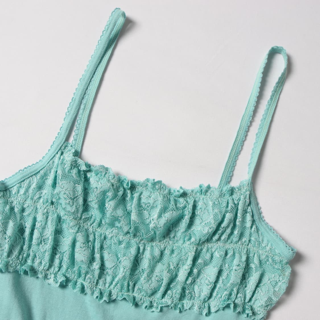 레이스 믹스 민트 코튼 슬리브리스 표기 사이즈 L 제품입니다 실측 사이즈 가단33 총장39 소재 코튼 100% 제품 상태 좋은 상태 (10 / 10) 유지중입니다.