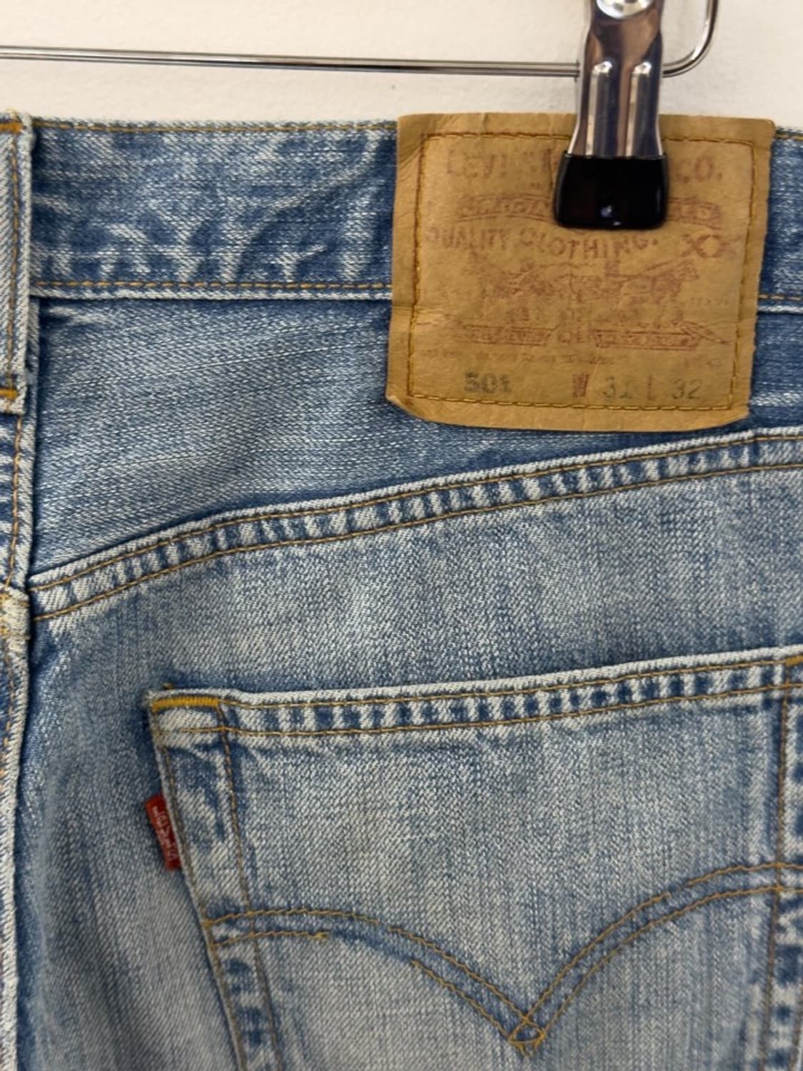 made in Japan 90년대 제작된 리바이스의 데님 팬츠 입니다. 스트레이트한 실루엣과 빈티지한 워싱감이 매력적인 아이템 입니다. 수축으로 인해 표기사이즈와 실측사이즈가 약간 다를 수 있습니다. 실측 단면 사이즈 (측정 방식에 따라 1-2cm 오차가 있을 수 있습니다) 허리29inch/38cm 밑위30cm 허벅지33cm 총장99cm 밑단23cm cotton 100%