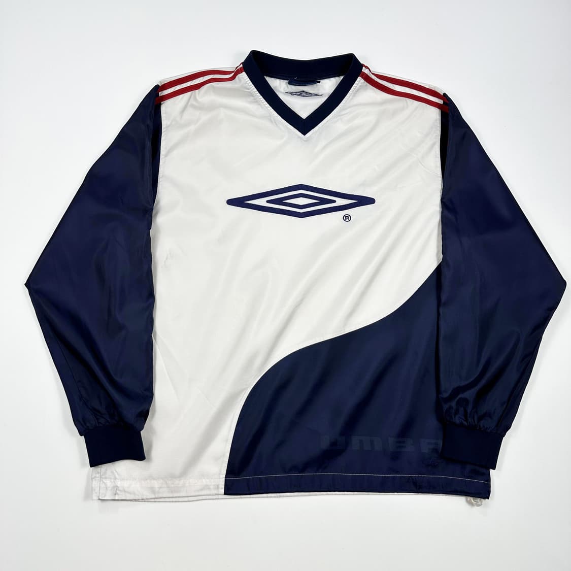 • 엄브로 빅로고 오버핏 우븐 트레이닝 웜업 • 가격: 25,000 • 사이즈: L (총장 73 가슴단면 63 어깨단면 52) 실측사이즈 105 • 상태: 8.5 / 10 사용감 및 오른쪽 가슴 오염 존재, 드라이권장, 사진참고