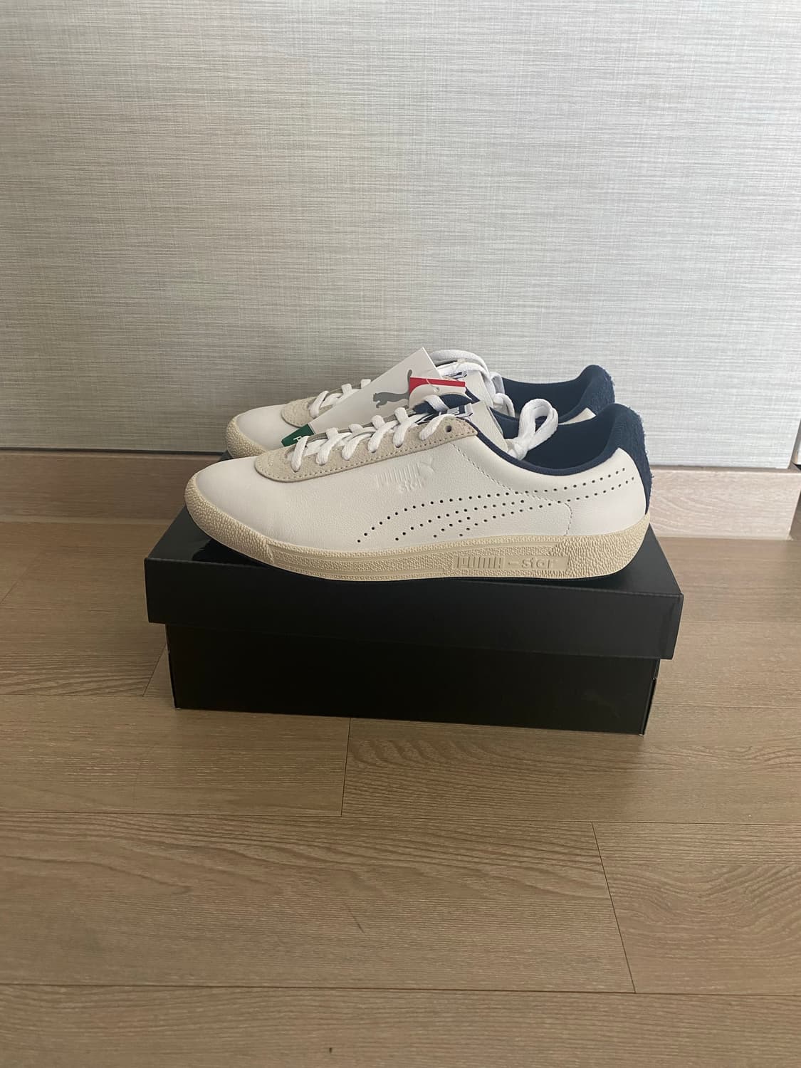 푸마의 프리미엄 스니커즈 아카이브 컬렉션인 SELECT 라인 중 시그니처 제품인 Star OG 제품입니다. 1980년대 초반에 출시된 PUMA의 클래식 아카이브 코트화인 Star가 더욱 깔끔하고 세련된 룩으로 업그레이드 되었습니다. 가죽과 스웨이드 소재의 조합으로 제작되었으며, 폼스트립에 추가된 천공 디테일이 독특한 스타일을 선사합니다. 굉장히 편안한 착화감과 함께 깔끔하고 미니멀한 디자인이 매력적인 제품입니다. 원가 149,000원 / 235,240사이즈 택 달린 새상품, 풀박스 구성으로 드립니다!