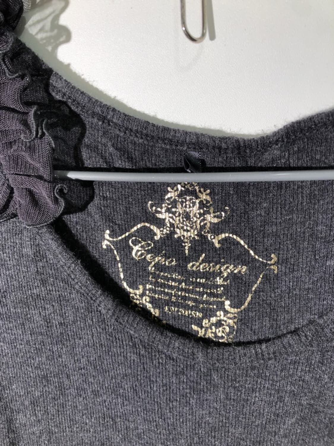 JPN VINTAGE 울 긴팔 티셔츠 스트라이프 밑단 레이스 디테일 블랙