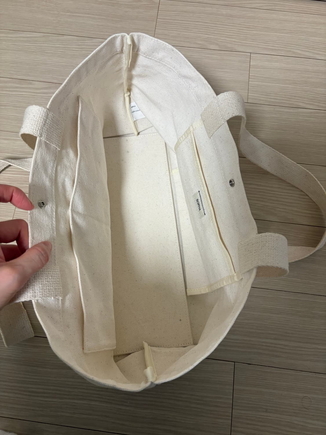 와이드한 쉐입이 멋진 에코백입니다 모서리 약간의 때탐만 있고 너무 컨디션 좋아요. 수납칸도 많고 대충들어도 멋스러워요 지금은 할인하는데 29cm에서 정가 16에 구매 브랜드:SOPHA