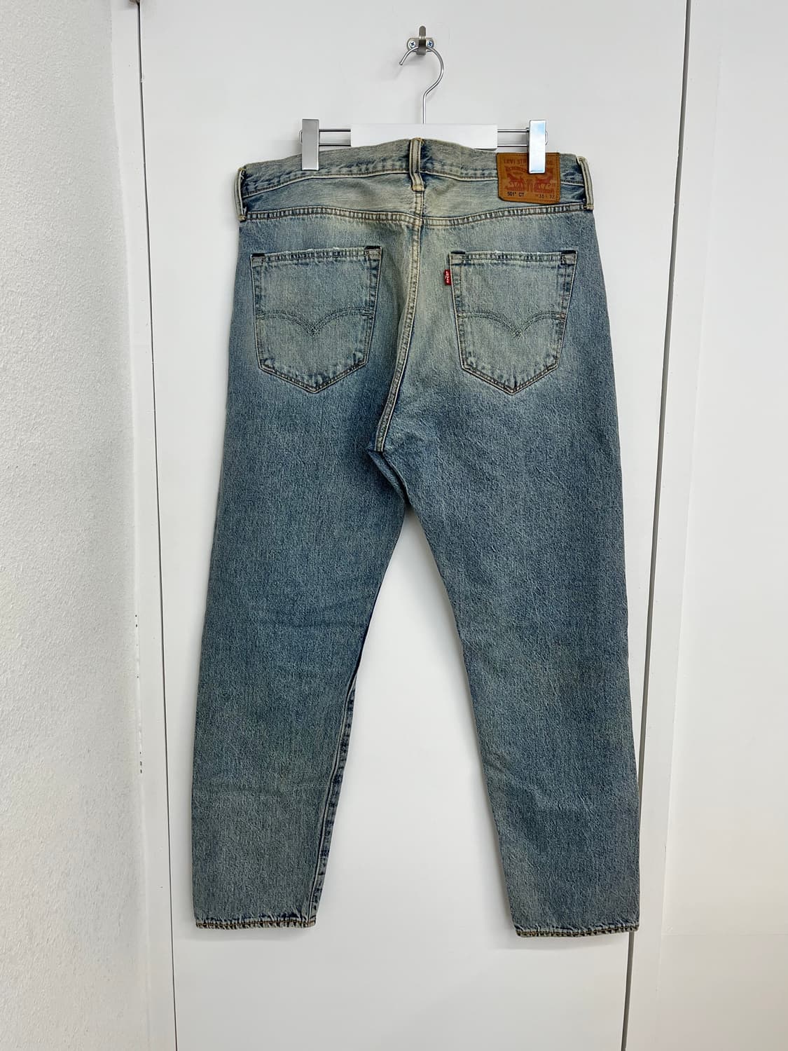 LEVI'S 501 (#054) -표기 36 (실측기준 35inch) - 허리 45/총장 105 / 밑위 30/ 허벅지 34.5/ 밑단 18 - 가벼운 사용감 존재합니다. 상세사진 참고 부탁드립니다!! -모델은 164/54 입니다. 골반과 힙이 있는편이라 골반에 걸쳐 착용 한 점 참고 부탁드립니다!! 모든 착샷 문의는 환영입니다😌