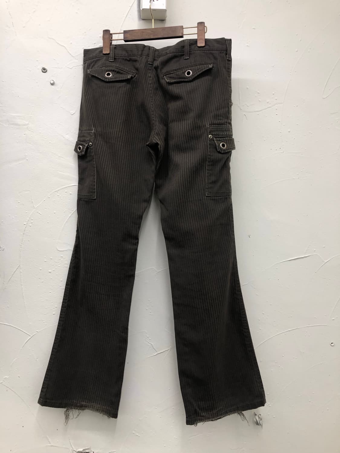 밑단 뜯김이나 오염 살짝 있지만 이쁩니다! 가까이서 찍은게 제일 색감이 비슷하네요. 총장 106cm 허리단면 44cm 허벅지 29cm 밑단 25cm 실측 오차 존재 할 수 있습니다!