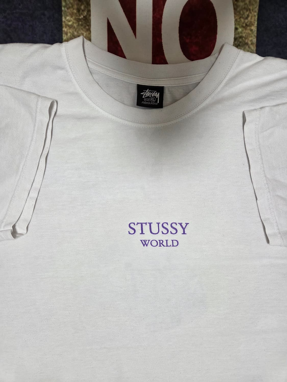 스투시 정품 월드 반팔티 사이즈 XL(오버핏) 자연스런 사용감있습니다. 사진처럼 전면에 얼룩있으니 참고하세요. 민감하신분들은 패스바랍니다. 화이트 색감의 월드 프린트가 매력적인 아이템입니다.