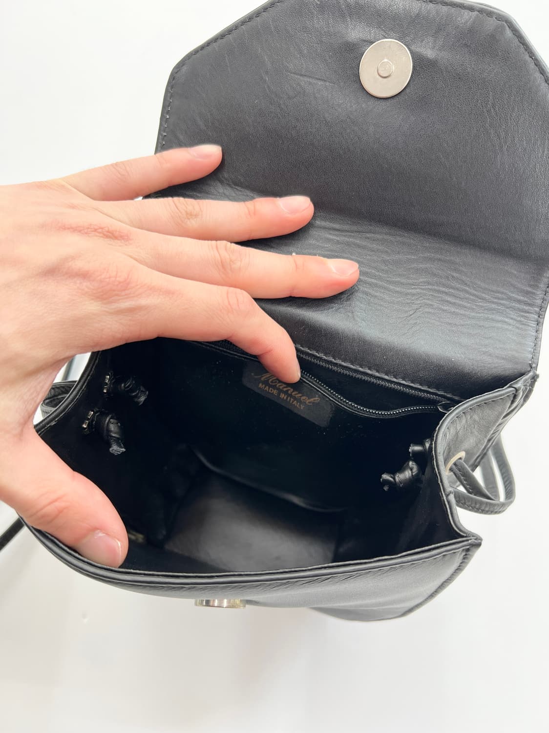 콘초 디테일 안쪽 구멍으로 기장감 조절 가능합니다. 숄더 크로스 가능합니다 이태리 메이드 바디만 가로 16 세로 17