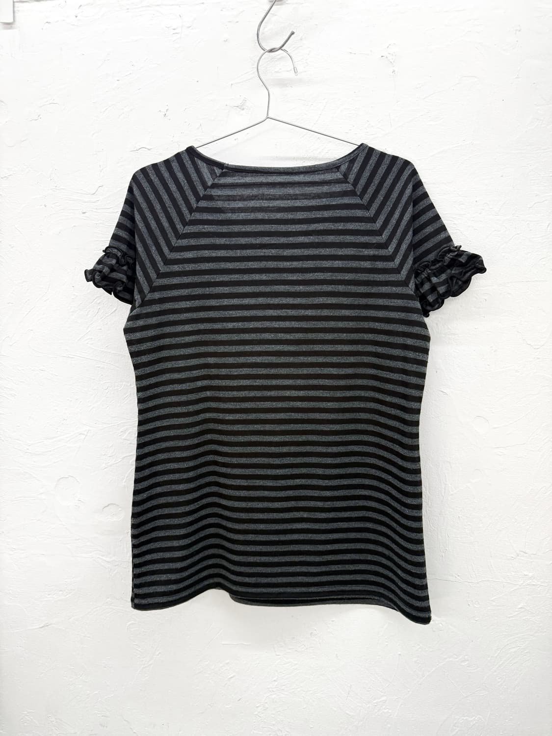 JPN 스트라이프 프릴 티셔츠 - SiZE : L - Length-68 Chest-48 Sleeve-24 (CM) - Condition : 9/10 - DM for product inquiry and purchase