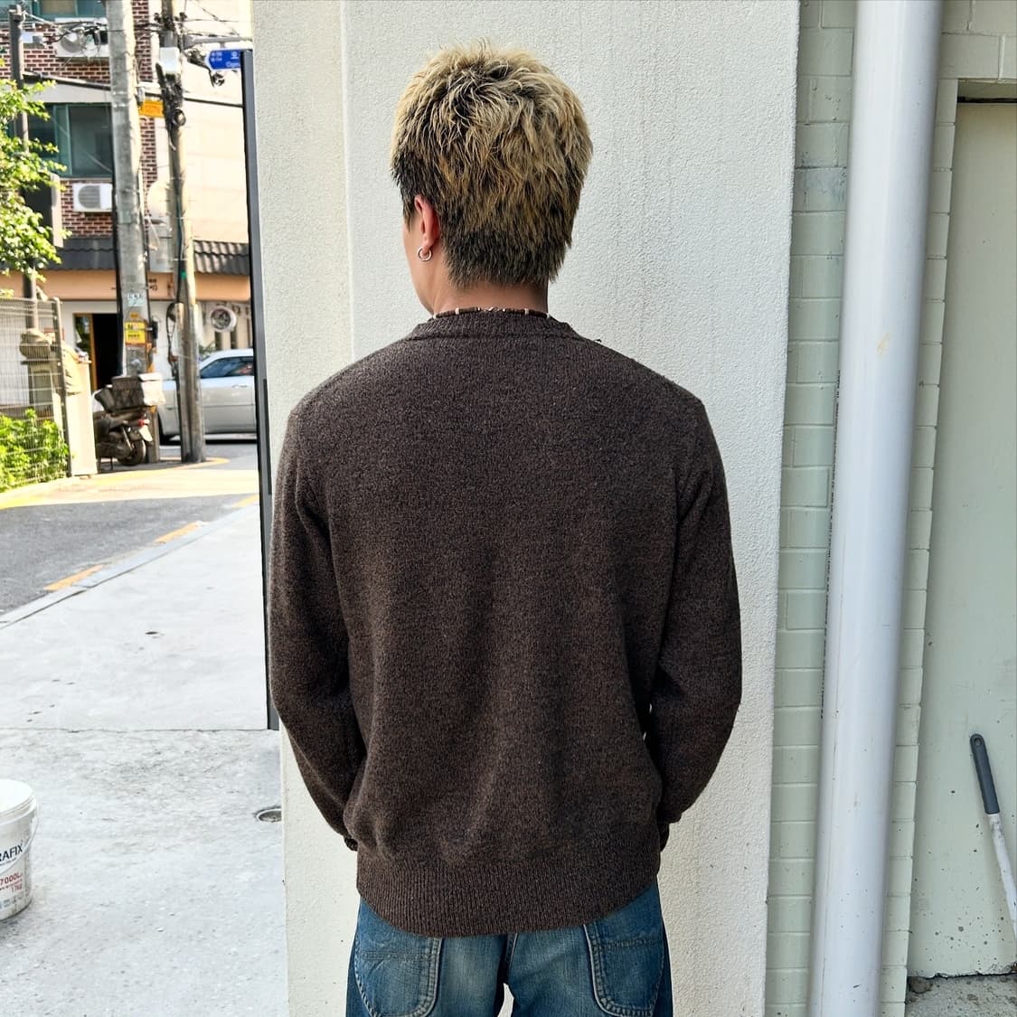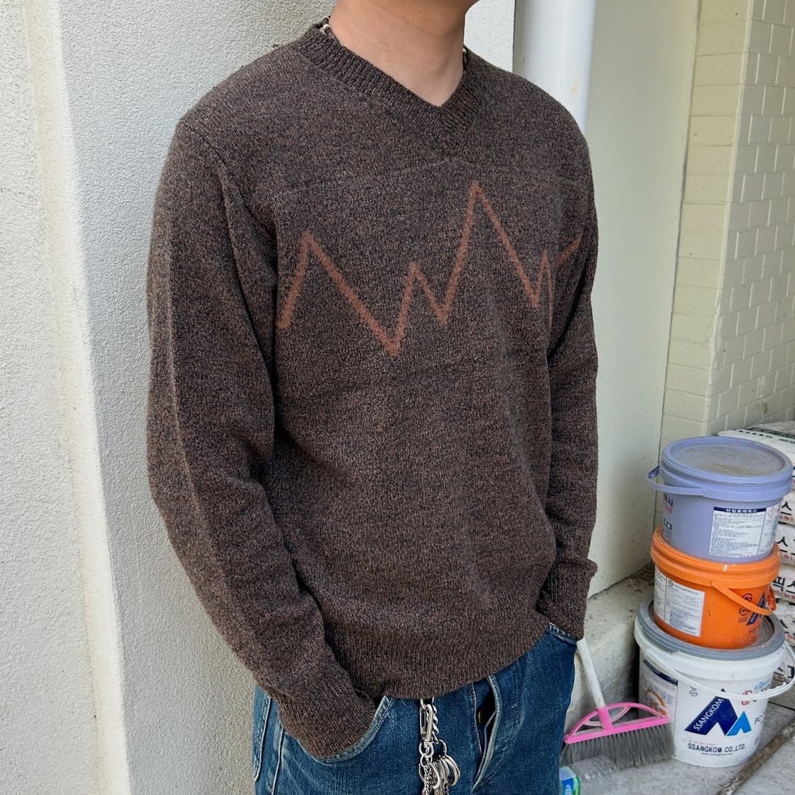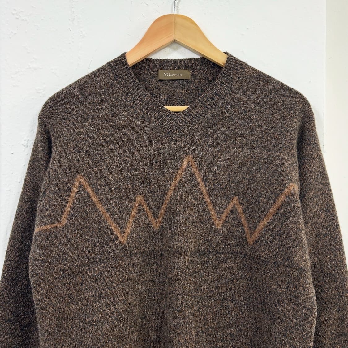 요지 야마모토사 와이즈 포 맨 라인 V넥 니트입니다. 울 소재 80% 나일론 20% 로 촘촘한 짜임의 원단감과 전면 배색 지그재그 디자인이 매력적인 상품입니다 :D 나일론 소재로 착용시 깔끌거림이 존재 할 수 있습니다 ! 요지 야마모토 브라운 지그재그 V넥 니트 사이즈 OS 어깨 45 가슴 54 소매 59 기장 66