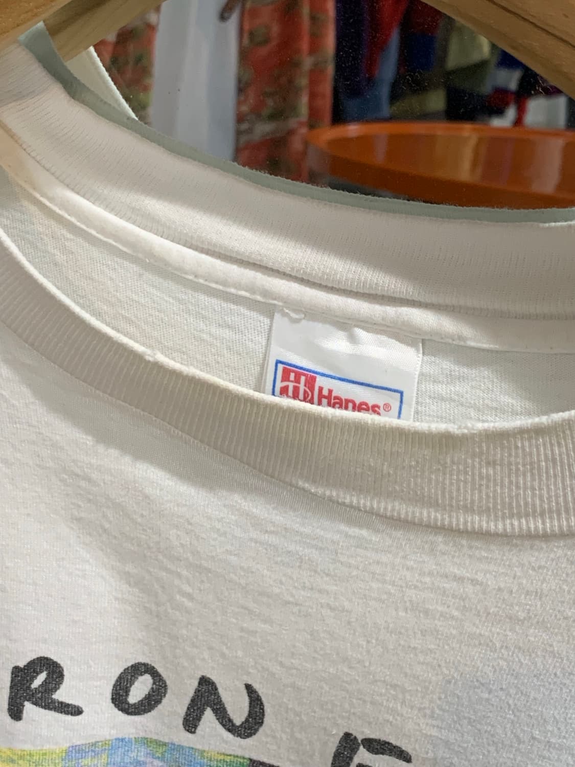 🚩Detail 1953년 가족들이 브루클린에 정착한 이래로 다양한 작품을 선보이며 뉴욕에서 자리잡은 아티스트 피터 막스는 미국과 멕시코가 맞닿는 국경 벽화를 화려한 색채의 그림으로 수놓은 것을 계기로, 큰 규모의 작품을 만든 공로를 인정받아 미국 대통령들의 백악관 행사에 참가하고는 했습니다. 지미 카터 대통령의 초청 행사가 끝나고 뉴욕으로 돌아가면서 본 자유의 여신상을 미국 민주주의의 심볼로 여겨 1976년부터 자유의 여신상, 그리고 동상의 얼굴에 횃불의 빛이 닿아 복잡한 색감을 보이는 순간을 포착하여 머리만 따로 그린 리버티 헤드(Liberty Head)라는 작품을 선보입니다. 피터 막스의 대표작 중 하나인 리버티 헤드 작품이 프린팅된 아트 장르의 티셔츠입니다. 지금은 바론 캐피탈이라는 이름으로 운용중인 바론 펀드가 작품활동을 후원하는 스폰서 프린팅이 함께 올려져 있습니다. 군데군데 얼룩이 있고 전면 프린팅 하단부와 후면 몸판에 핀홀이 있는 사용감이 어느정도 있는 제품으로 상의 105호 혹은 그보다 작게 입는 분들에게 권장드릴만한 사이즈입니다. 🚩Condition 군데군데 얼룩이 있으며 전면 및 후면에 핀홀이 있는, 사용감 있는 제품. 🚩Measurement 어깨단면58.5 가슴단면60 소매21.5 총장72 (cm)