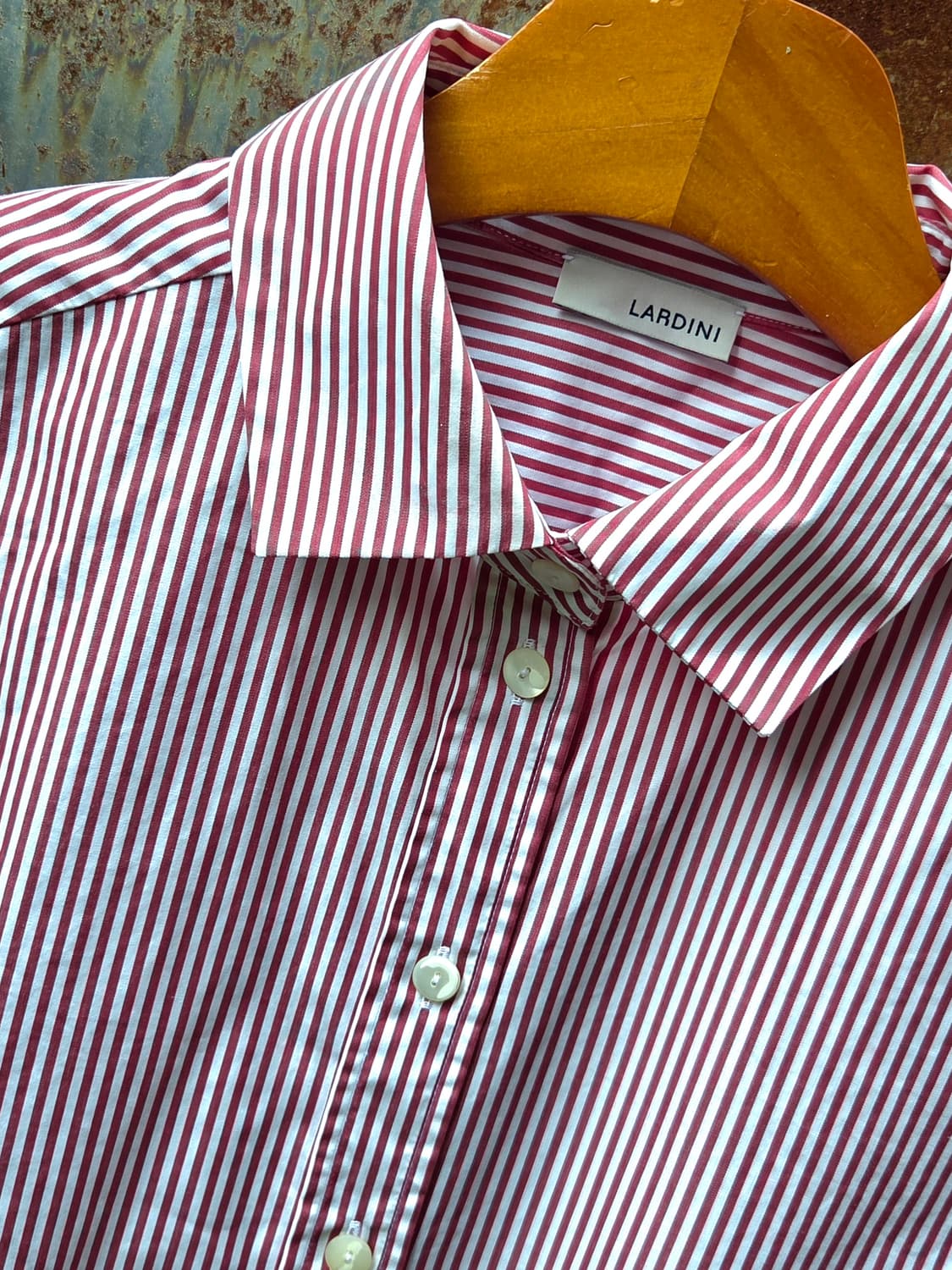 나폴리탄 셔츠들이 지닌 곡선을 보다 여성적인 관점으로 풀어낸 이탈리아 브랜드 라르디니의 한장입니다. 매니시한 무드를 담백히 드러낸 웰메이드 모델로 사이즈 여성 66 추천합니다. 감사합니다.