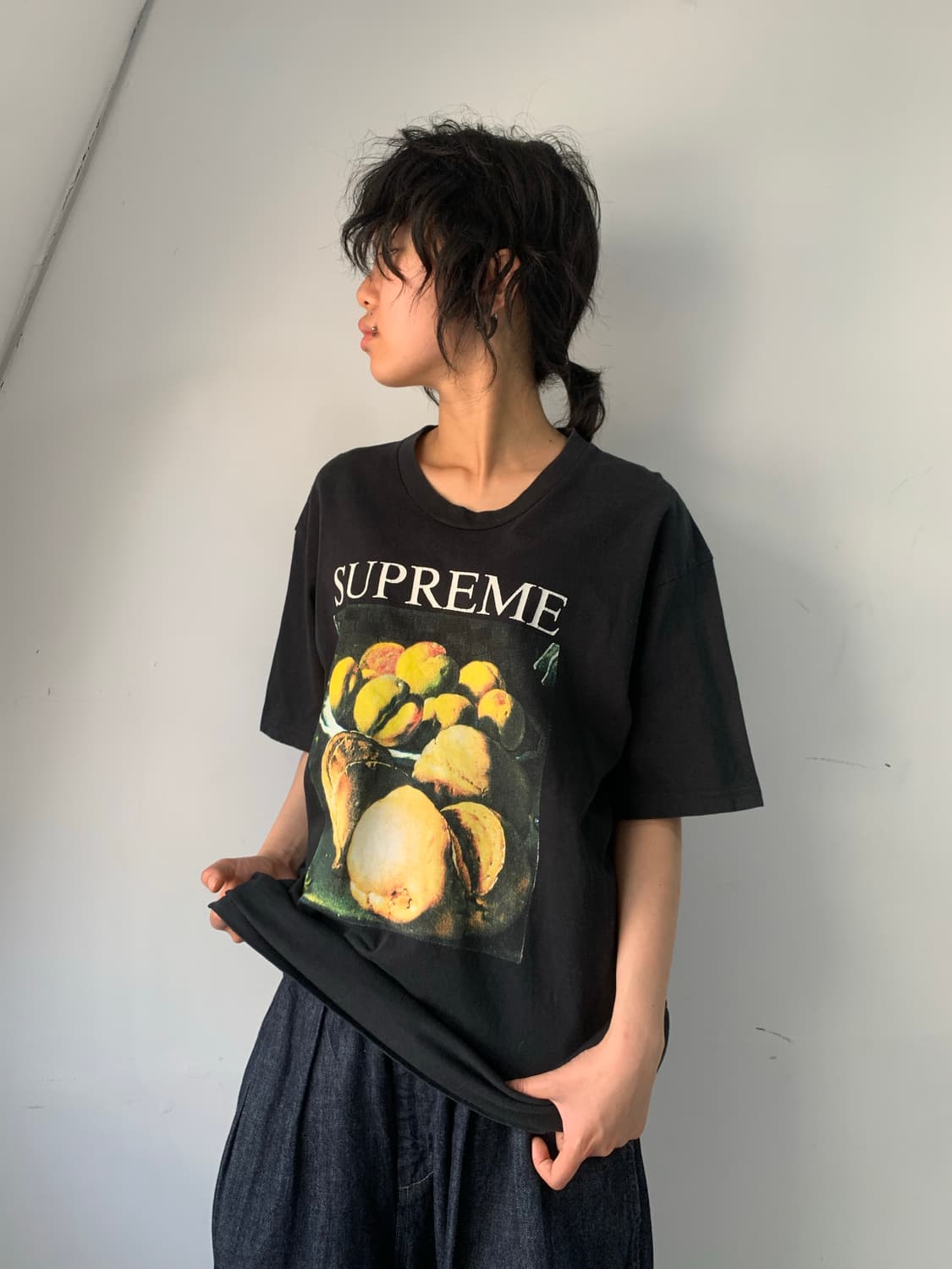 Supreme 18FW Still Life Black T Shirts •슈프림 18FW 시즌 발매된 스틸 라이프 티셔츠 •슈프림 로고 부분 대미지 존재 -어깨 52cm 가슴 55cm 기장 78cm ( 표기 사이즈 L ) -Price : 90,000