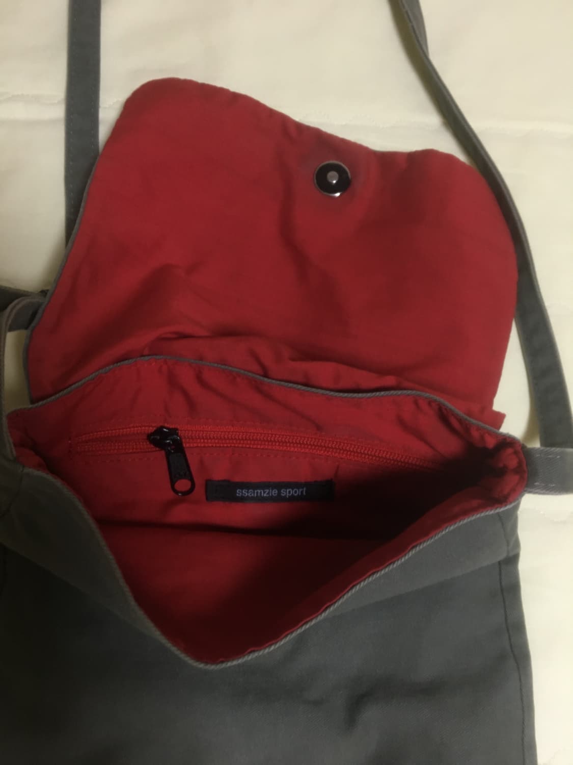 카키색과 빨강색 배색이 너무 귀여운 크로스백입니다. 전체적으로 상태 좋지만 첨부한 사진처럼 가방 겉부분에 약간의 얼룩 있습니다. + 마지막 사진이 실물 색감과 가장 유사함 사이즈: 가로 22/ 세로 26