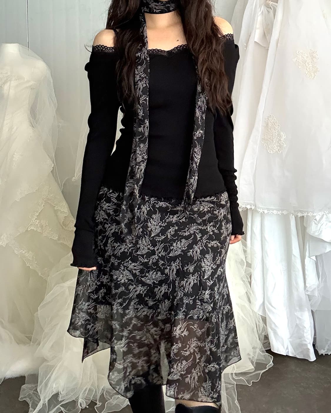 •40,000• top+ skirt set 가슴/총장(단면,𝑐𝑚) 35~/58 허리/총장(단면,𝑐𝑚) 33-49/64(long) 55 (short) ㆍ 오리엔탈 언발 미디스커트 ㆍ GU 블랙 롱 슬리브(얇은 소재) 모든 제품 무료배송(할인품목 제외 /도서산간 4,000원)