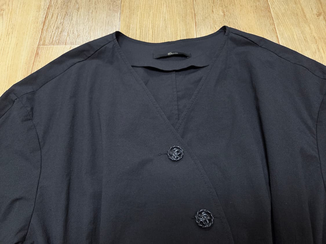 KL바이린(KL BY LYNN) 꼬임소매 블라우스 55-66/거의새거 반품 45 기장 60/스판有 블랙칼라에 꼬임소매 블라우스입니다 V넥에 비대칭 버튼 여밈이고 허리부분 턱주름 디테일입니다 거의 착용감없어 새거나 마찬가지입니다 가격은 29,000원입니다 반품불가/착불