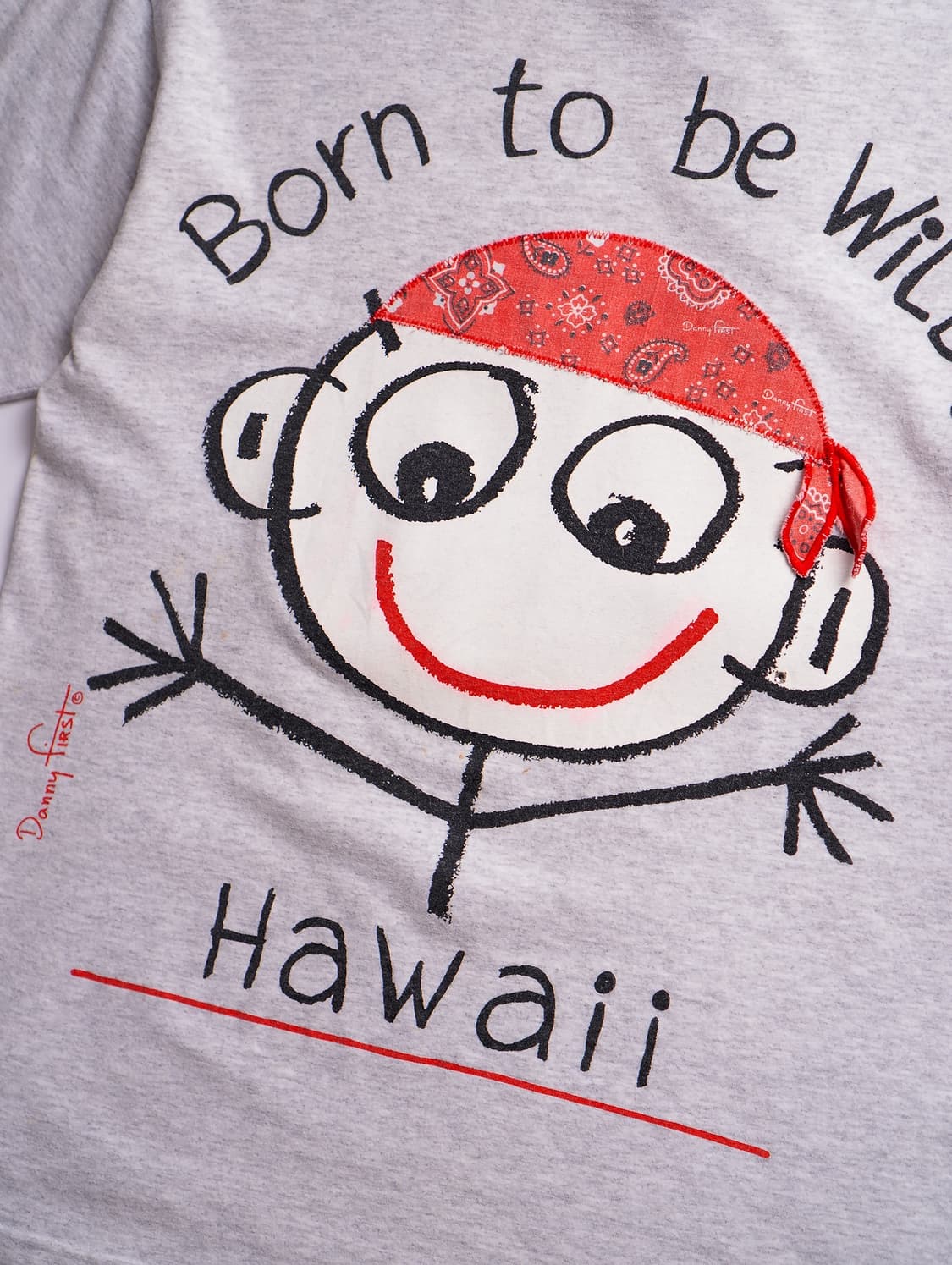 [For Sale] 90’s Danny First “Hawaii” T-Shirt Details - Made In USA - Cotton 100% - Loopwheel Knitting - Double Stitch 90년대 생산된 Danny First의 Born To Be Wild 티셔츠입니다. 해맑은 표정의 캐릭터와 반다나 같은 패브릭을 활용한 3D 표현이 재밌는 제품이며, 준비된 제품 이외에도 90년대 다양한 시리즈로 생산된 것으로 확인됩니다. 하와이 테마를 담고 있어 여름철과 더욱 잘 어울리는 제품입니다. Size (cm) 어깨 50 가슴 52 허리 52 총장 69 소매 21 Price Check The Top Link 🖥️ #greenroom_vtg #90s #vintagetshirt #vintage #vintageclothes #vintageshop