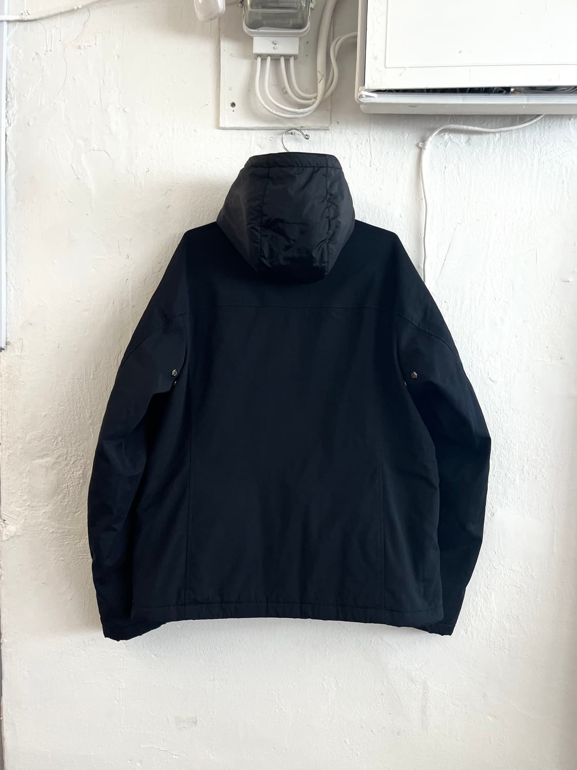 PRADA MADE IN ROMANIA RIRI ZIPPER 기능적이고 우아한 디자인의 의류를 제작하는 프라다 스포츠 라인에서도 다양한 기능과 특수 소재로 고가의 발매된 유틸리티 자켓 제품 입니다 3레이어 소재로 제작되어 일상 발수와 방풍이 가능하며, 지퍼를 통해 방수 기능이 있는 후드 분리가 가능합니다 모두 리리지퍼가 사용되었으며, 소매 및 옷 내부 전체적으로 지퍼포켓이 다양하게 있어 활용이 유용한 제품 입니다 긴 소매 디자인과 오버한 사이즈로, 프라다 스포츠에서 보기 힘든 실루엣을 보여주는 제품 입니다 size: 54 (암숄더 86 가슴 60 총장 76) condition: 8/10 (년식에 의한 사용감 존재하나, 오염 및 결함 없는 상태의 제품)