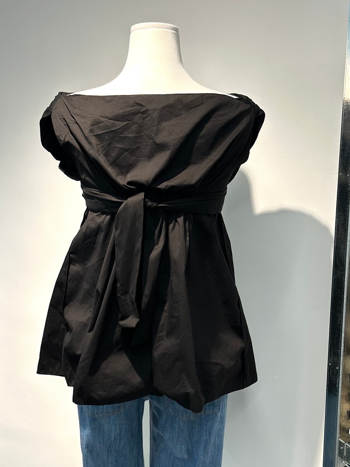 R-미우미우 V넥 슬리브리스 플레어 탑 📎 180,000 📎 총장: 65 가슴: 37 (40) ( 측정위치 및 방법에 따라 1-3cm 오차가 발생할 수 있습니다. ) 📎 컨디션: 전체적으로 상태 양호해요. ( 핸드폰 밝기를 최대로 늘려주셔야 실물과 가장 근접합니다.) 블랙컬러의 슬리브리스 플레어 탑입니다. 깊게 파인 V넥과 립부분 리본을 묶어 연출하여 섹시한 무드로 착용하기 좋은 제품이며미우미우 특유의 세련되고 우아한 느낌을 물씬 주는 제품입니다.