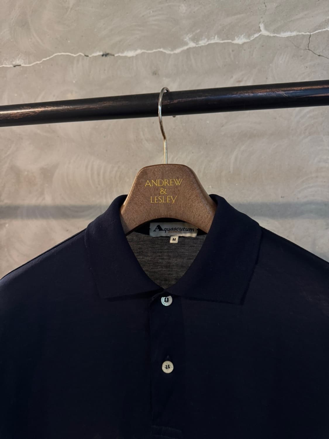 지극히 영국적인 태도를 취한 아쿠아스큐텀의 클래식pk입니다. 실켓면의 고급감을 휘발시키지 않을 단정한 네이비색감에 클래식컬한 아가일패턴의 우아함을 만끽하기 좋을 모델입니다. 사이즈 여유로운 100 추천합니다. 감사합니다.