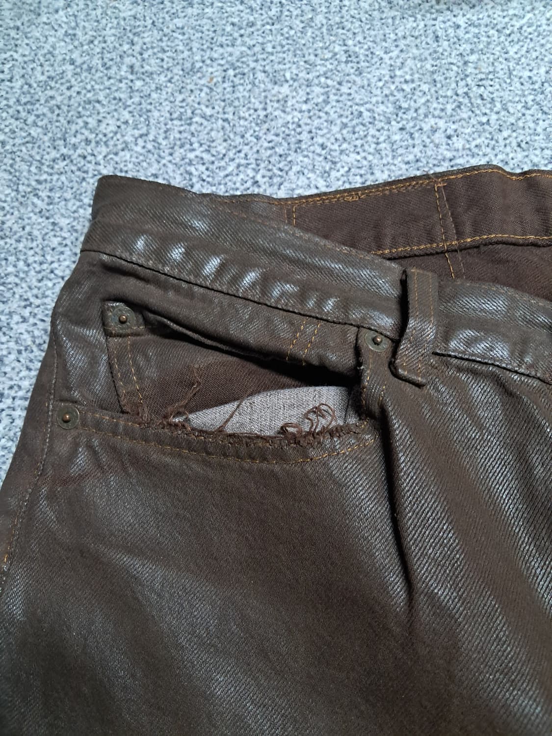 8번사진 체크 찢어지진 않음 표기33 허리단면42 기장100 밑단21 허벅지31.5 밑위29