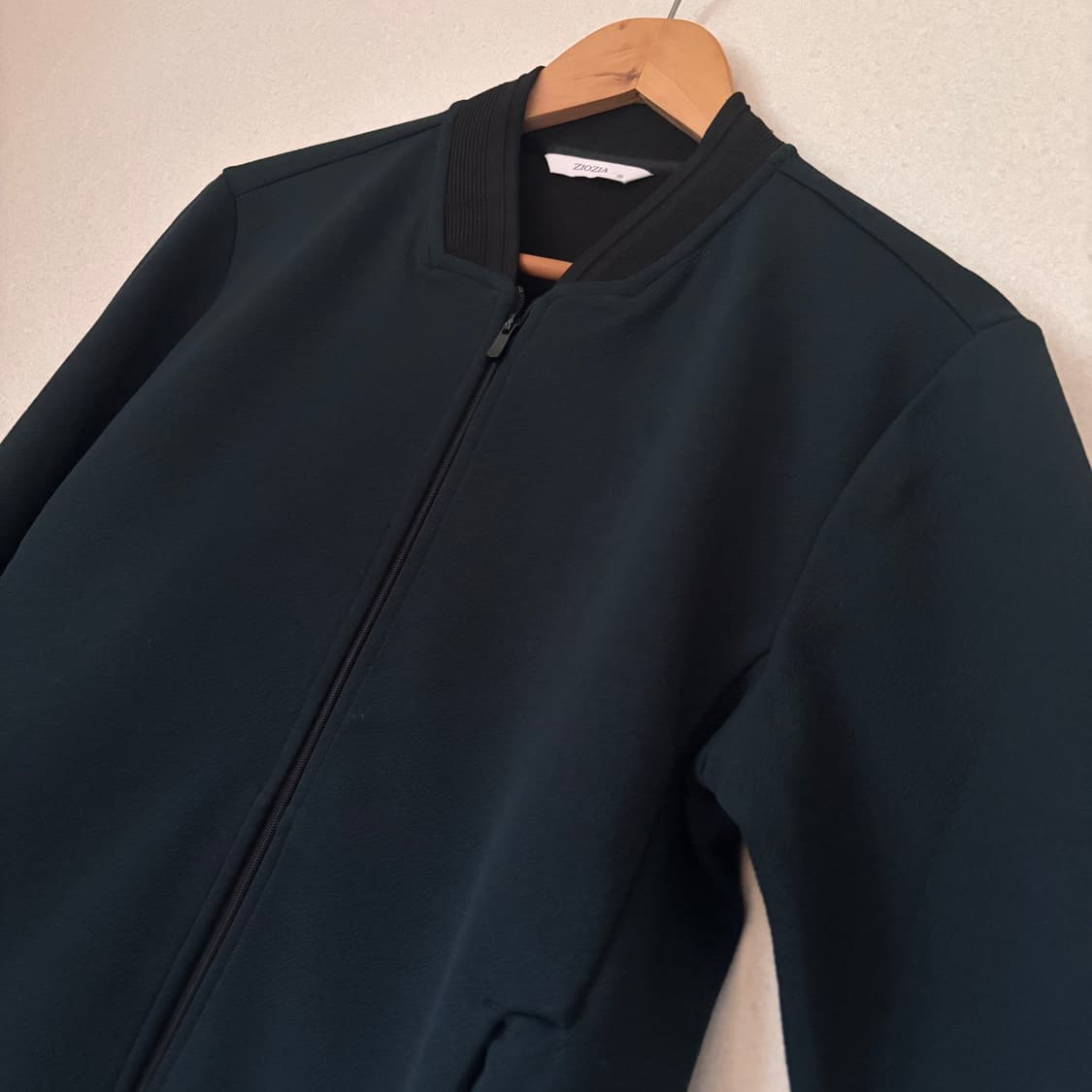 . 슬림핏 표기사이즈 95 길이62 가슴51 어깨44 팔61 신축성/ 편안한 착용감 다크그린/ 블랙 봄가을용 미니멀한 실루엣 .