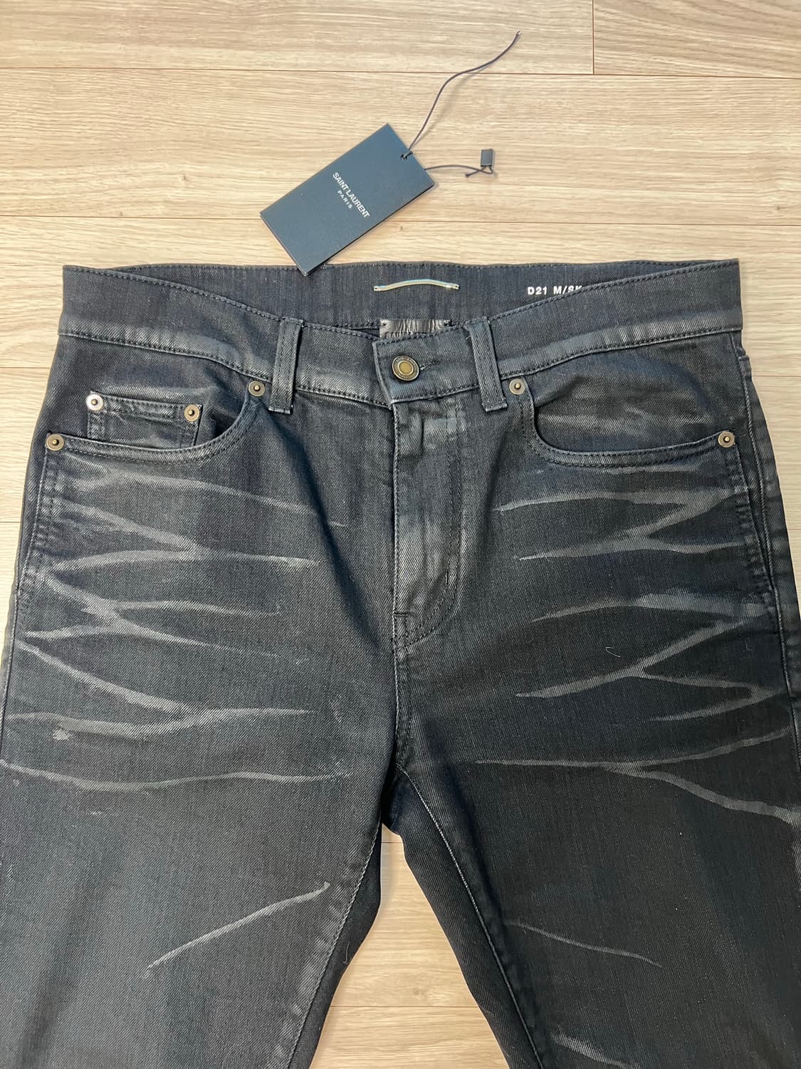 브랜드 : 생로랑 모델명 : BMC 601478 사이즈 : 30 구입장소 : 압구정 갤러리아 생로랑 매장 실측 : 허리둘레84, 엉덩이둘레100, 기장102, 허벅둘레58, 밑단둘레32 , 앞밑위25.5, 뒷밑위38 판매가 : 280,000>>250,000>>240,000 배송방법 : 운포 하자부분 내용 : 없음 보충설명 : 코튼98/폴리우레탄2원단으로 착용감 우수함. 거의 착용을 하지 않아 상태 좋음, 택 보관 중.