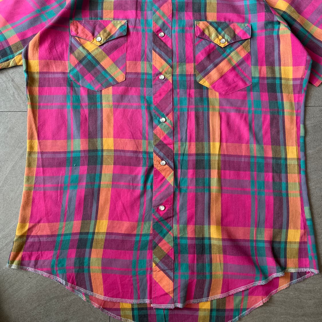 No.9227 #도떼기구매가능 90s Wrangler western half shirt (Made in USA) 90년대 미국 생산 랭글러 웨스턴 반팔 셔츠 입니다. -사진에서 보시듯이상품 자체가 매우 양호하게 보존되어 있습니다 -남성 M ~ L 추천드립니다. •Price - 64,900 •Color - check •Size - L 총장 앞74 뒤79 어깨46 가슴59 팔길이24 •측정위치에 따라 1-3cm 오차가 있을 수 있습니다.) •모든 상품 세탁, 고온 스팀이 완료 된 상품입니다. •배송전에 한번 더 스팀 작업 진행합니다. •구매 전 공지사항과 사이즈를 다시 한번 확인 부탁드립니다